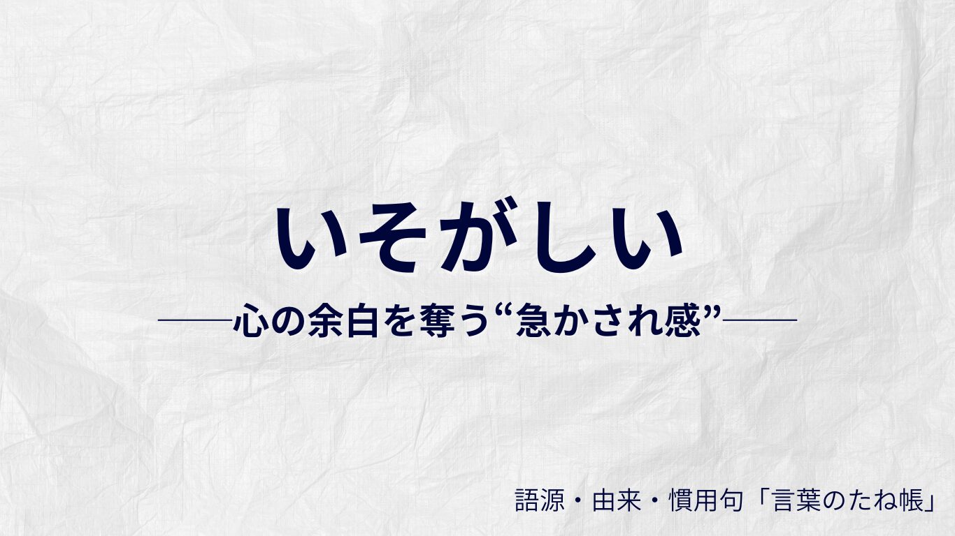 「いそがしい」は、現代の生活で最もよく使われる形容詞のひとつですが、語源は古語の 「いそし(急し)」=差し迫る・急を要する にあります。