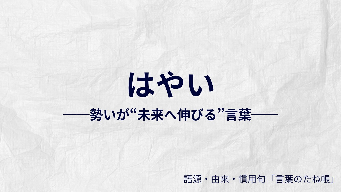 「はやい」は日常でもっとも使われる基本語ですが、語源は意外に奥深く、“は(端)=先・鋭い” + “や(矢)=まっすぐ飛ぶもの” が結びついた語源系統にあります。