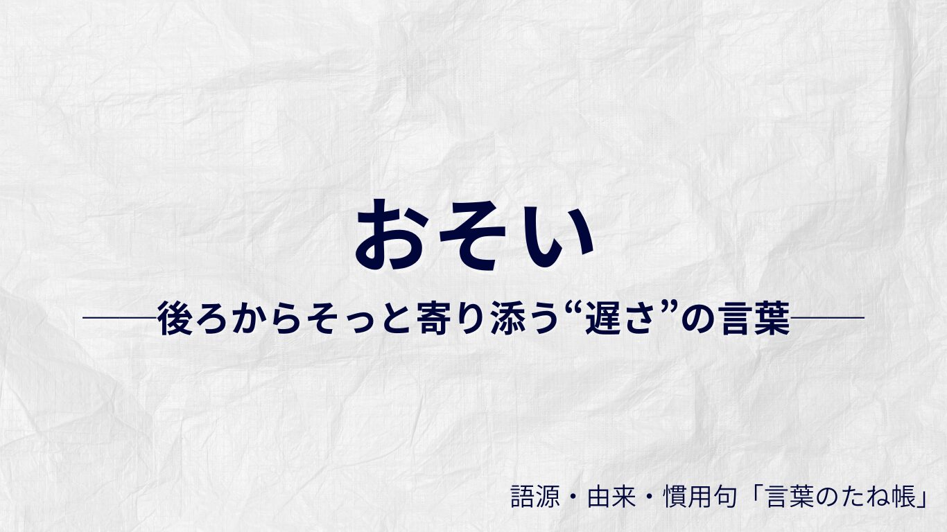 「おそい」は、「時刻に遅れる」「動きがゆっくりしている」という日常語ですが、語源は古語の 「おそし(後し)」=後に回る・遅れる にあります。