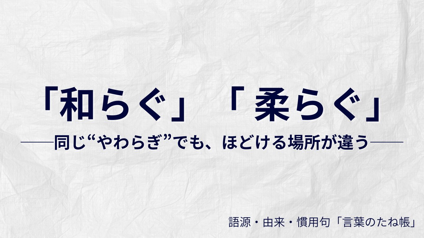 「和らぐ」と「柔らぐ」は、同じ“やわらぎ”を感じさせながら、出発点がまったく異なる言葉でした。