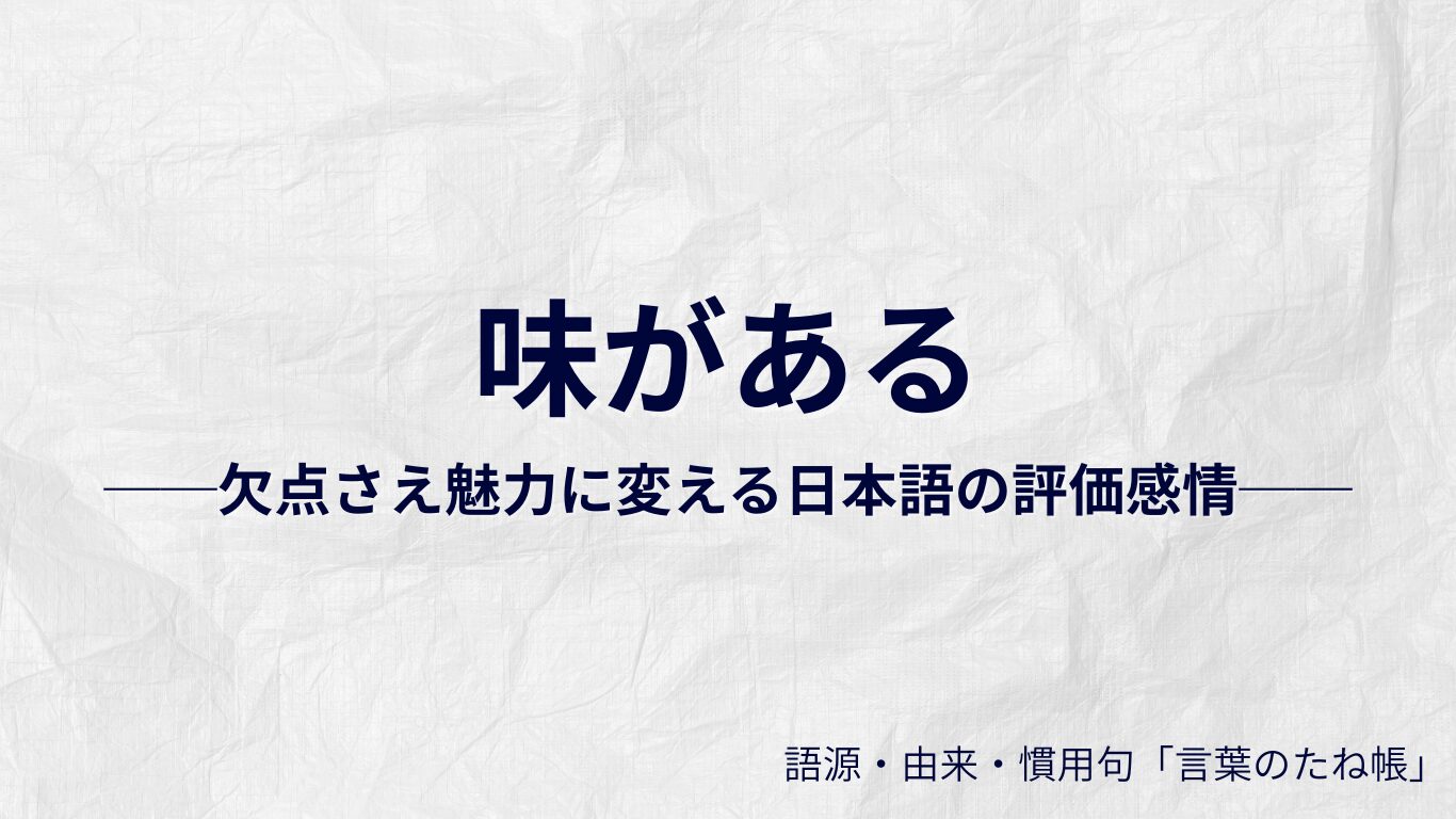本記事では、「味がある」の語源・意味の広がり・感情とのつながりを読み解き、なぜこの言葉が“欠点すら魅力に変える評価語”になったのかを探ります。