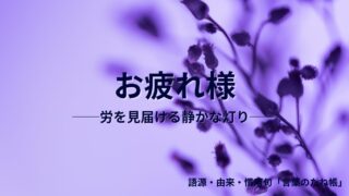 3. 挨拶・日常語の語源 「お疲れ様」の語源は“労いと見届け”──日本人の関係性を包む言葉 「お疲れ様」の語源は“疲れ+様”。相手の労を見届ける日本的な敬意の表現がどのように生まれたか、文化背景と比喩を交えて深掘りします。 3. 挨拶・日常語の語源