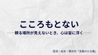 感情語の語源 「こころもとない」の語源は“心許なし”──支えを失った心の日本語 「こころもとない」の語源は古語の「心許なし」。支えや見通しがなく、心が宙づりになる感覚はどこから来たのか。不安と曖昧さを表す日本語の成り立ちを語源から解説。 感情語の語源