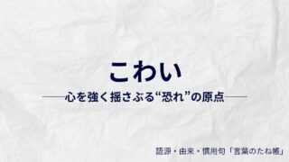 感情語の語源 「こわい」の語源は“こはし(強し・怖し)”──心を強く揺さぶる“恐れ”の原点 「こわい」の語源は古語「こわ(強)」。心身の強ばりから生まれた恐れの表現を、文化背景と比喩を交えて深掘りします。 感情語の語源