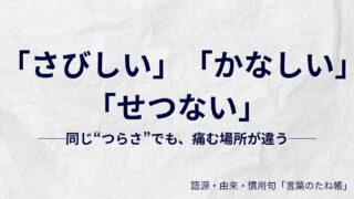 感情語の語源 「さびしい」「かなしい」「せつない」の違い──離れる・失う・張り裂ける 「さびしい」「かなしい」「せつない」は似た感情に見えて、語源はまったく異なります。環境が冷える孤独、愛が引き裂かれる痛み、張り裂ける心の緊張。語源から感情の違いを読み解きます。 感情語の語源